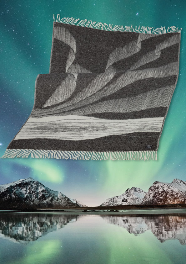 Please have a look at the information film. All blankets come with a QR-code you can scan and you will see a "timelaps" of the Northern lights over Vesterålen north in Norway. The music is composed and recorded by Reidar Ydse. The blanket is produced from 100% pure Norwegian wool. And come in 2 sizes: 130 x 200 incl. fringes.